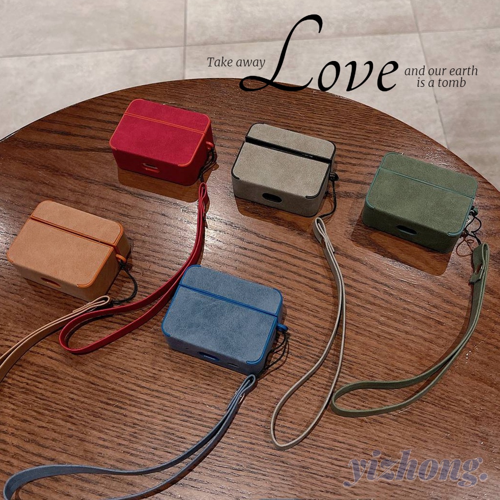 Caixa Para Airpods Pro 2 3 1 Fone De Ouvido Vintage PU Couro Multicolor Forma Quadrada Capa Macia Fones TPU Com Alça Anti-Perda Concha Protetora Sem Fio