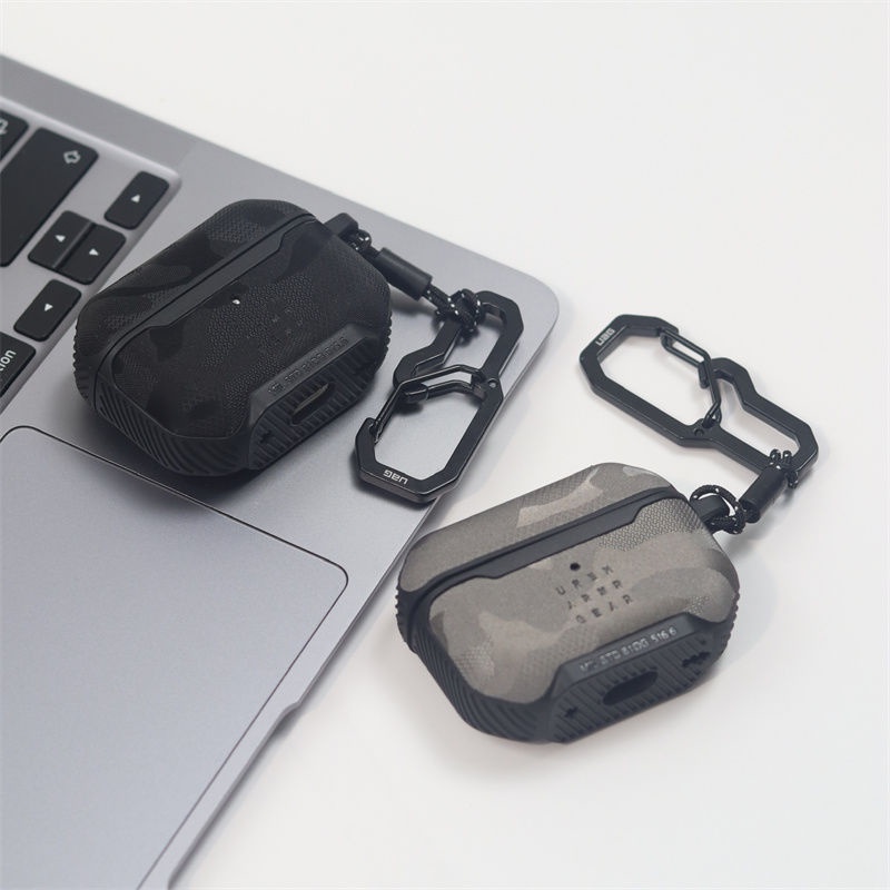 UAG Camuflagem De Couro Capa De Nylon TPU Para Airpods Pro 2/2/1 Protetora Fone De Ouvido De Corpo Inteiro Com Mosquetão Destacável