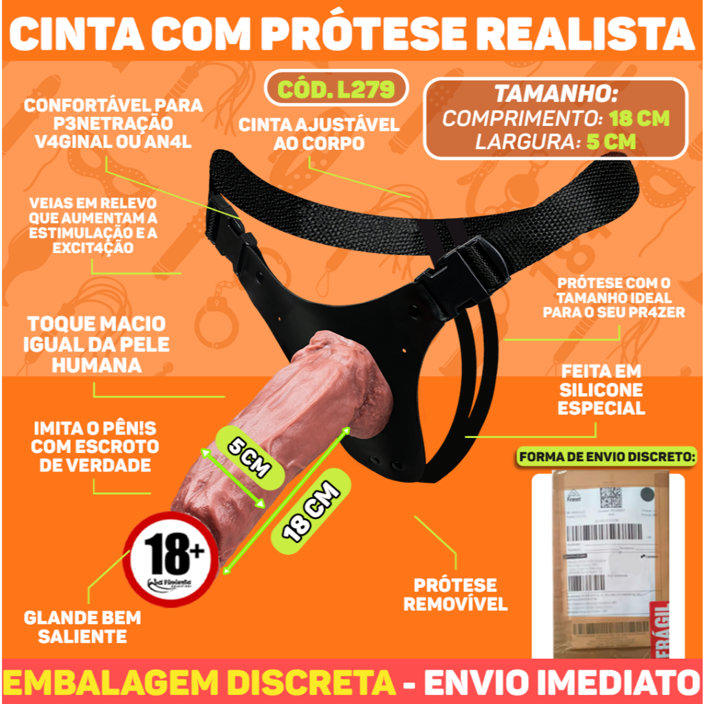Cinta StrapOn com Prótese com Vértebra em CyberSkin 18,5 x 4,5cm
