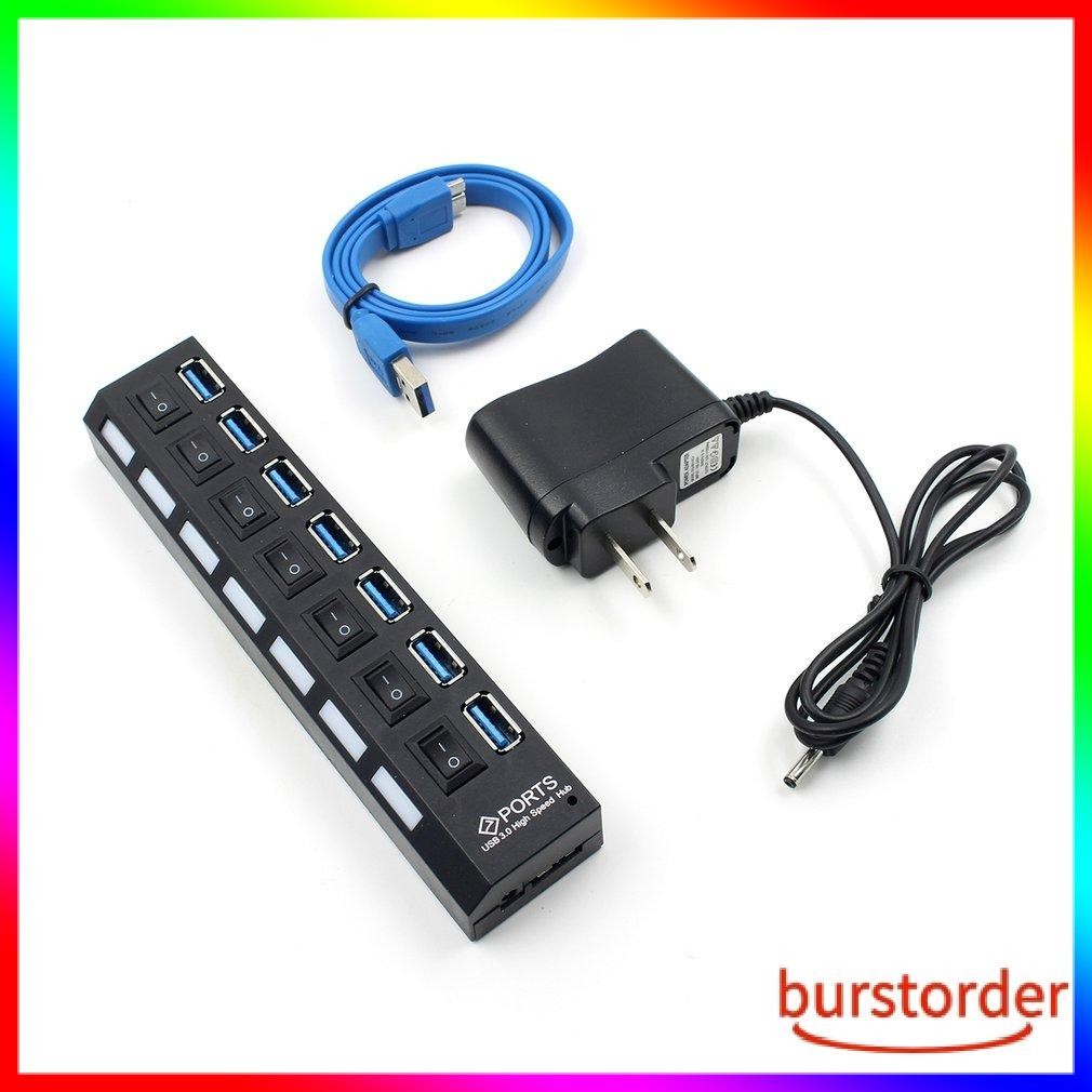 Hub USB 3.0 de alta velocidade com sete portas separadas, hub adaptador de energia leve e compacto com fonte de alimentação