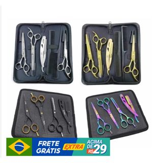 Kit 3 Tesouras Profissionais Barbeiro Fio Navalha Desbaste