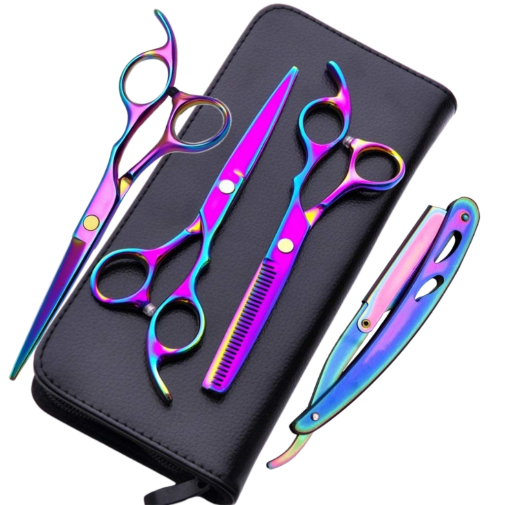 Kit 3 Tesouras Profissionais Barbeiro Fio Navalha Desbaste Aurora Boreal
