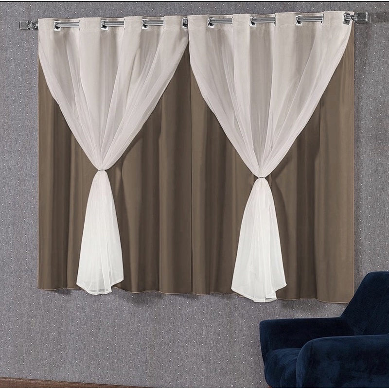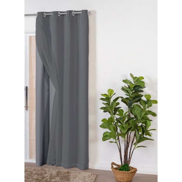 Cortina Blackout blecaute Com Voil Liso 2,80m (largura) X 1,80m (altura) Para Janela Ilhós Cromado