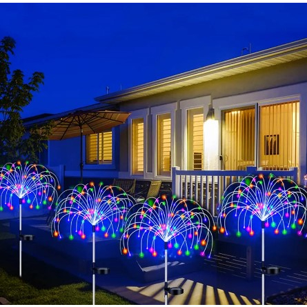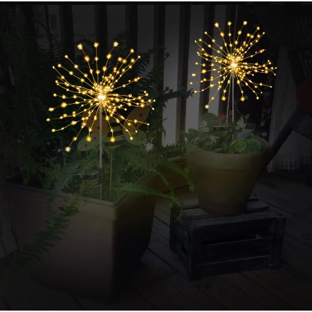 Luzes LED Solares Impermeáveis C/2 Hastes P/ Exteriores Decoração de Jardim Simulador Fogos de artifício Fada Lâmpada de Gramado Pátio Passarela Quintal - R86555