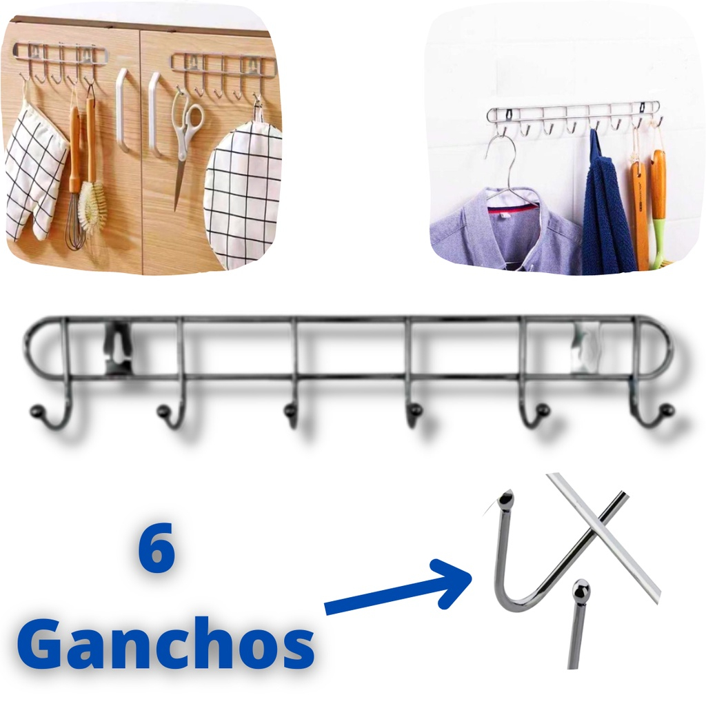 Suporte Aramado De Parede Multiuso Com 6 Ganchos Metal Inox