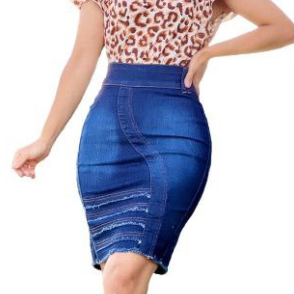 Saia Jeans Feminina Destroyed Moda Evangélica Com Lycra ENVIO IMEDIATO no Estilo