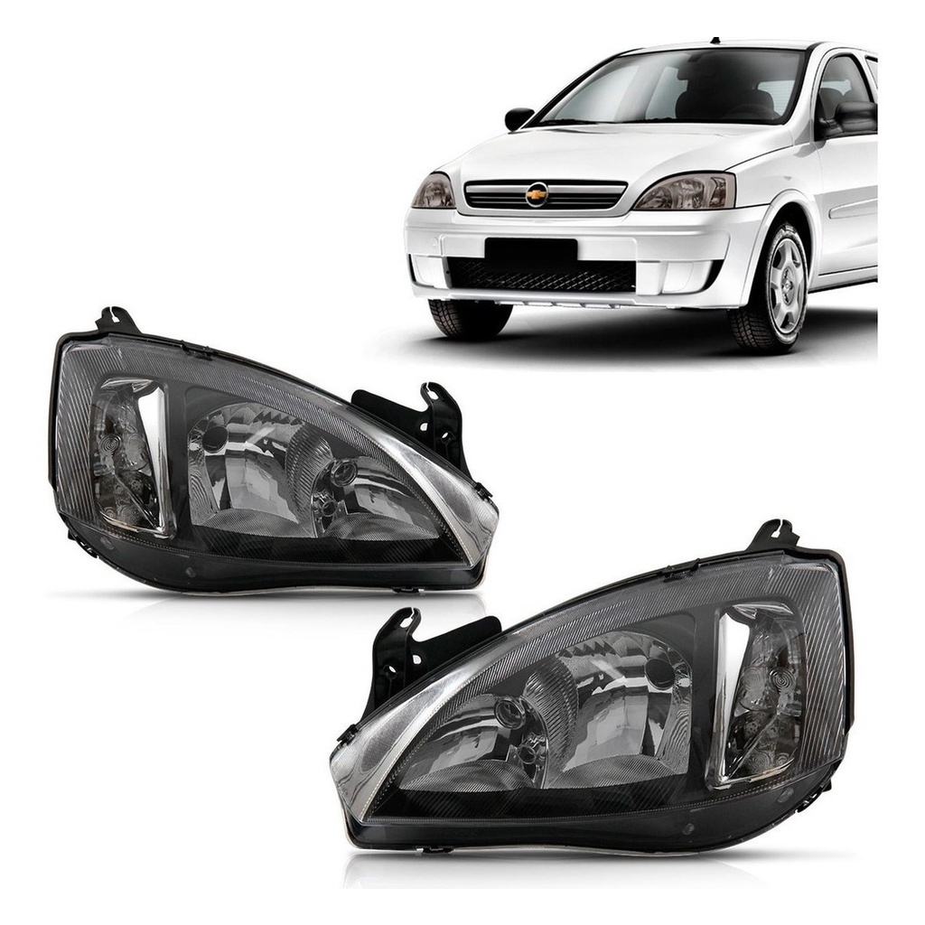 Par De Farol Corsa E Montana 2003 A 2011 Mascara Negra