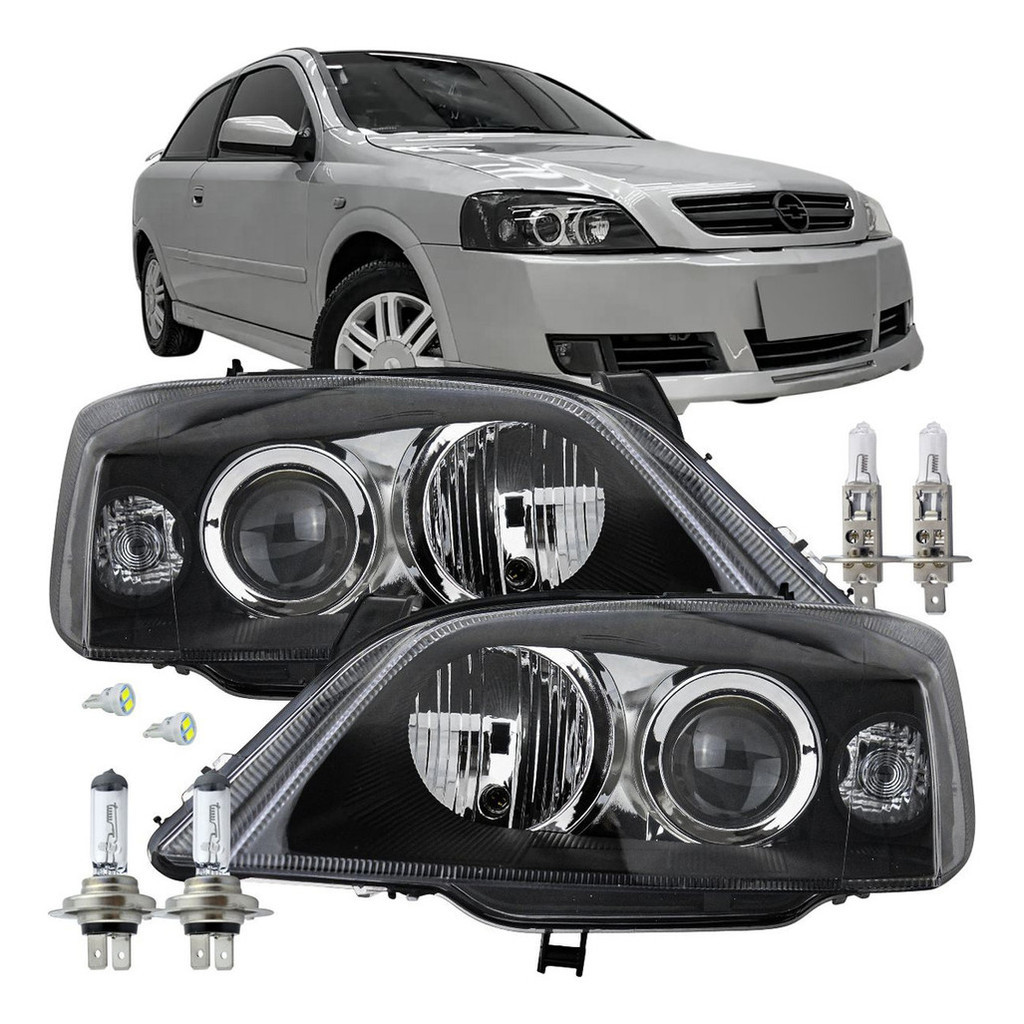 Par Farol c/ Lampadas Astra Hatch Sedan 2003 04 05 06 07 08 à 2012 Mascara Negra