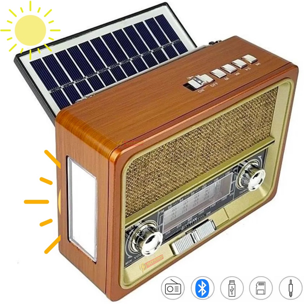 Radio Retro Vintage FM AM USB SD Bluetooth com Bateria Solar 8 Bandas portátil som de qualidade