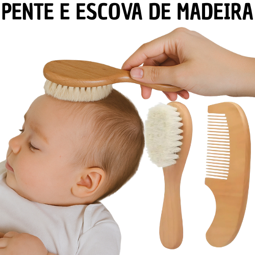 Kit Escova e Pente de Cabelo de Bebê Madeira e Lã Natural Infatil