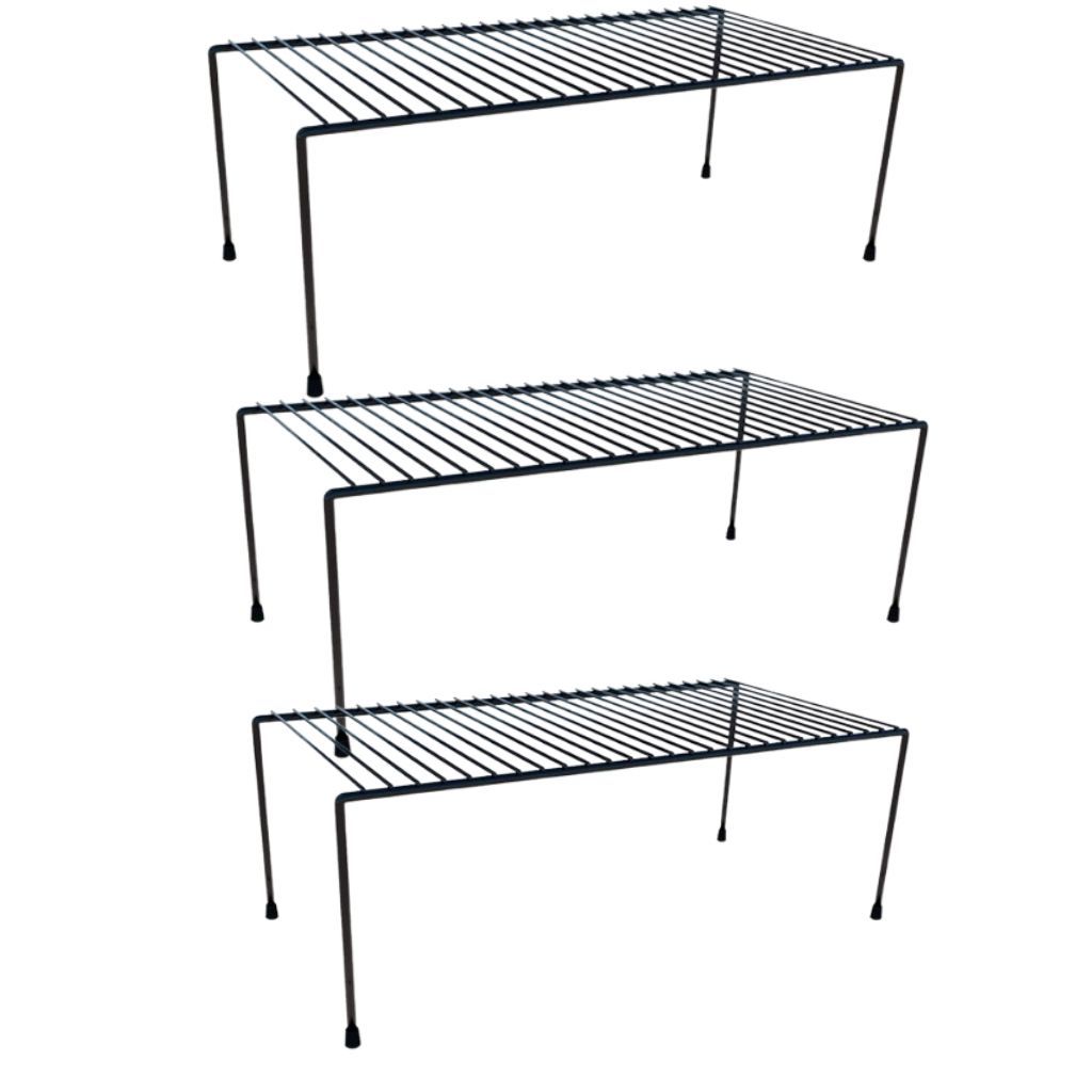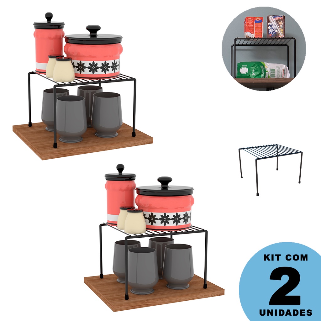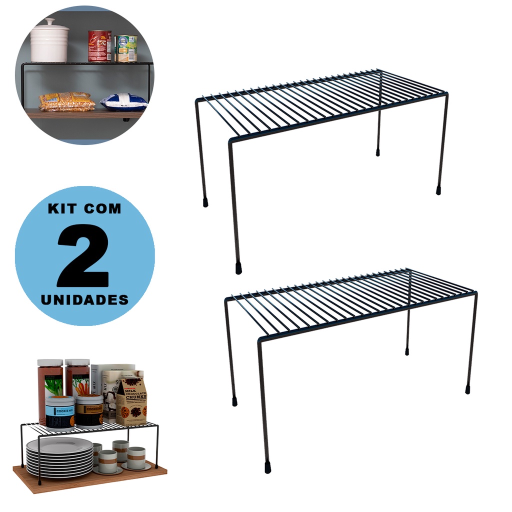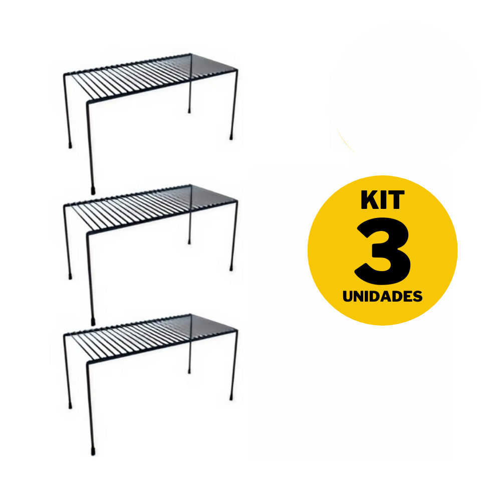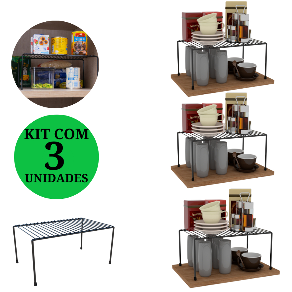 KIT 3 Organizador Suporte de Armário Cozinha Prateleira Pratos Copos Aramado Preto
