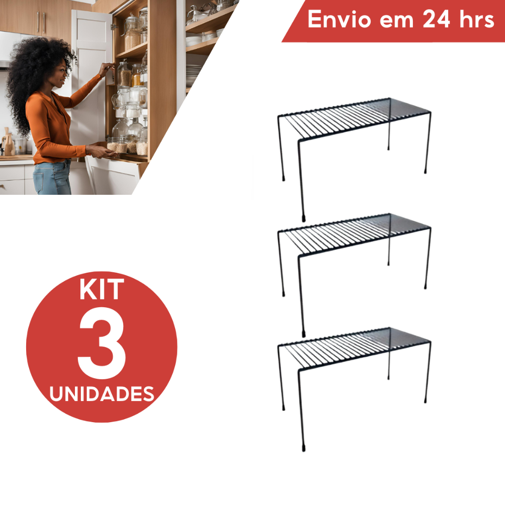 Kit 3 Organizadores de Armário Cozinha Grande 42 cm DiCarlo Aço Carbono