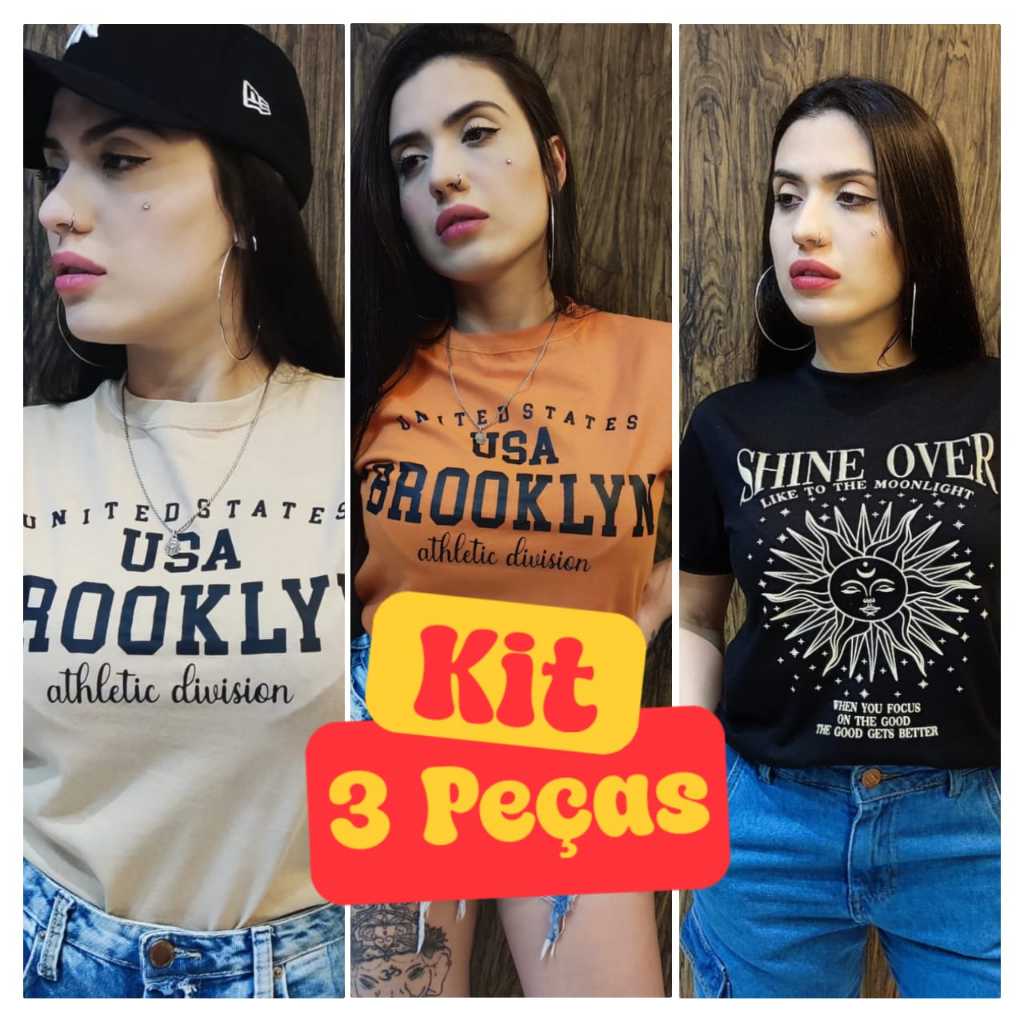 kit com 3 camisetas blusa feminina t-shirt 100% algodão direto de fábrica