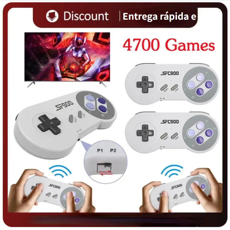 SF900 Retro Video Game Consoles com 2 Controladores de Jogo Gamepad 2.4G Wireless Receiver 4700 Jogos Para Super Nintendo SNES NES