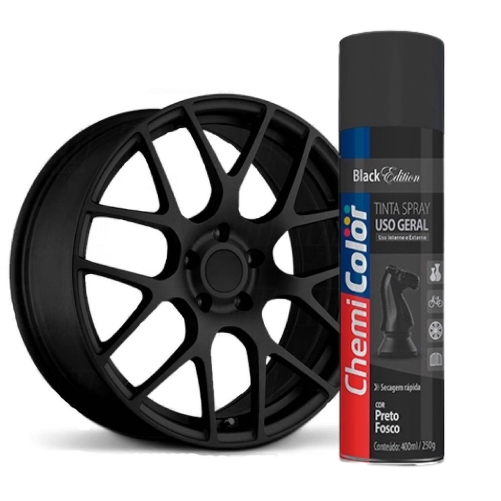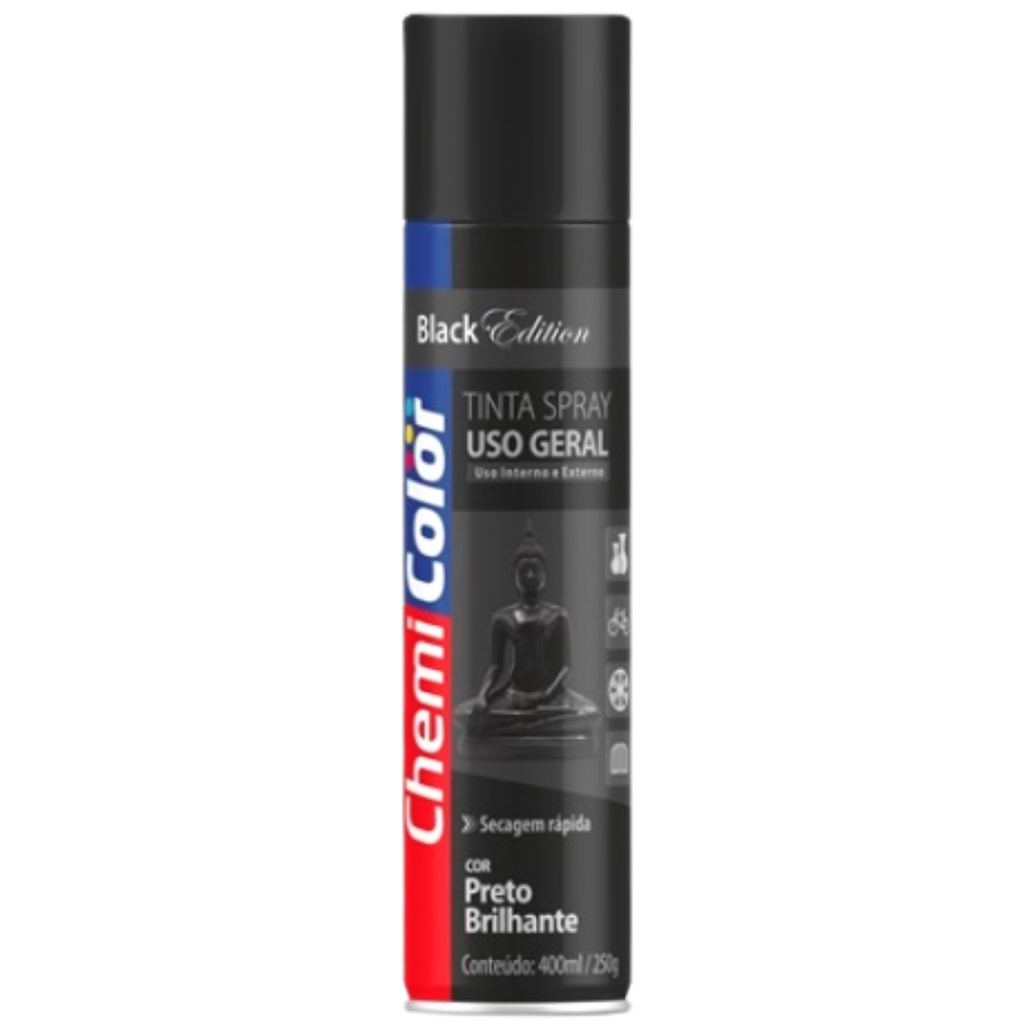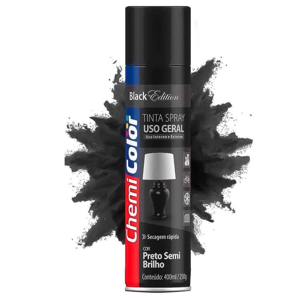 Tinta Spray Preto Fosco Uso Geral ChemiColor Uso Interno/Externo Secagem Rápida 400mL/250g