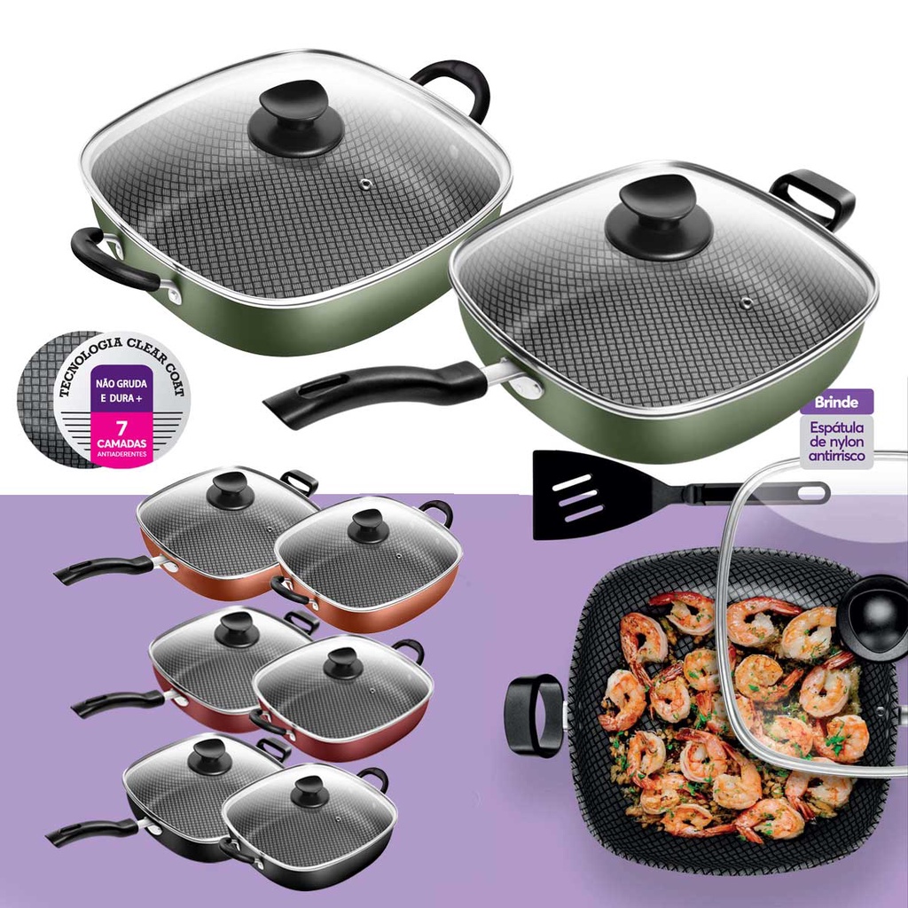 Kit Frigideira Antiaderente Quadrada N°29 Gourmet + Frigideira Antiaderente 2 Alças Patolux