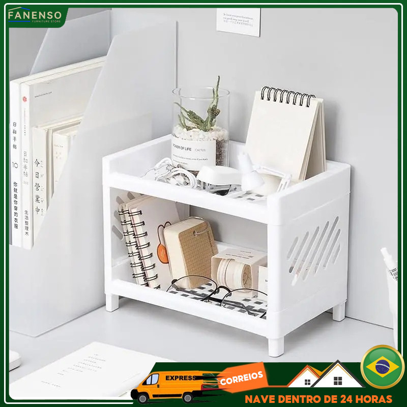 🔥BR Spot Mercadorias🔥 1 Peça Rack De Armazenamento De Plástico, Rack De Armazenamento De Mesa Simples Branco De Camada Dupla Para Casa
