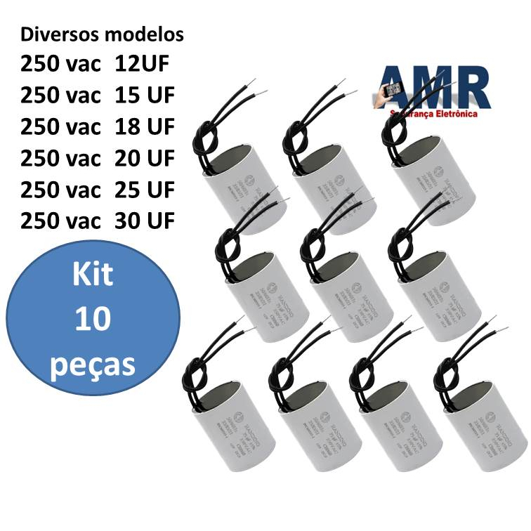 kit 10 peças Capacitor 250 vac 12 uf, 15 uf, 18 uf. 20 uf, 25 uf, 30 uf, Portão Eletrônico, Motor