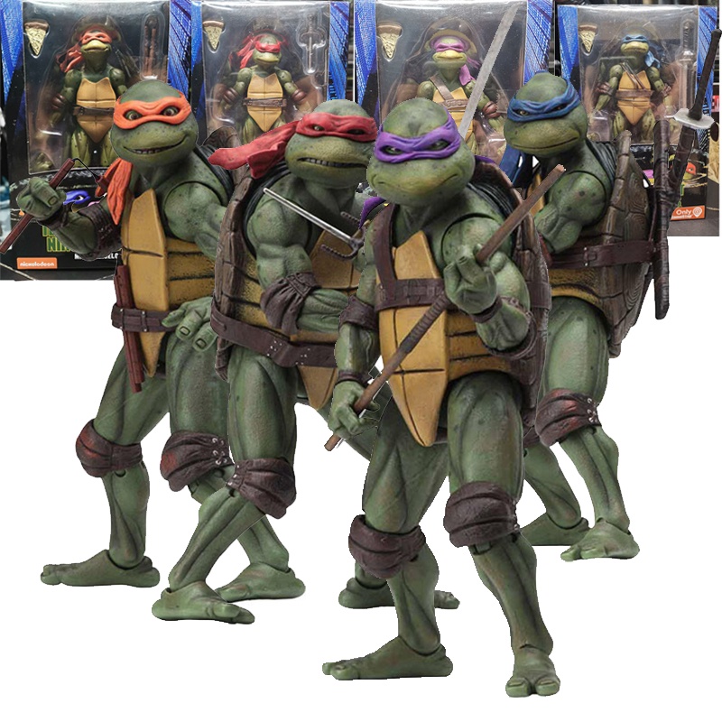 NECA Tartarugas Ninja Teenage Mutant TMNT Ação Figura 1990 Edição Filme Leonardo Raphael Michelangelo Donatello Kit Modelo De Figuras Tartaruga Kid Toy