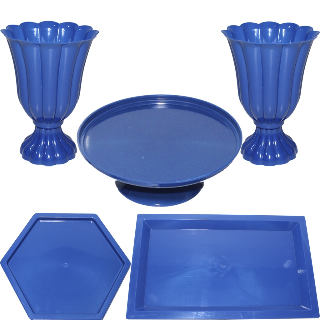 Kit Festa 5 Peças 3 Bandejas Suporte De Doces e Bolos 2 Vasos Slim Azul Royal