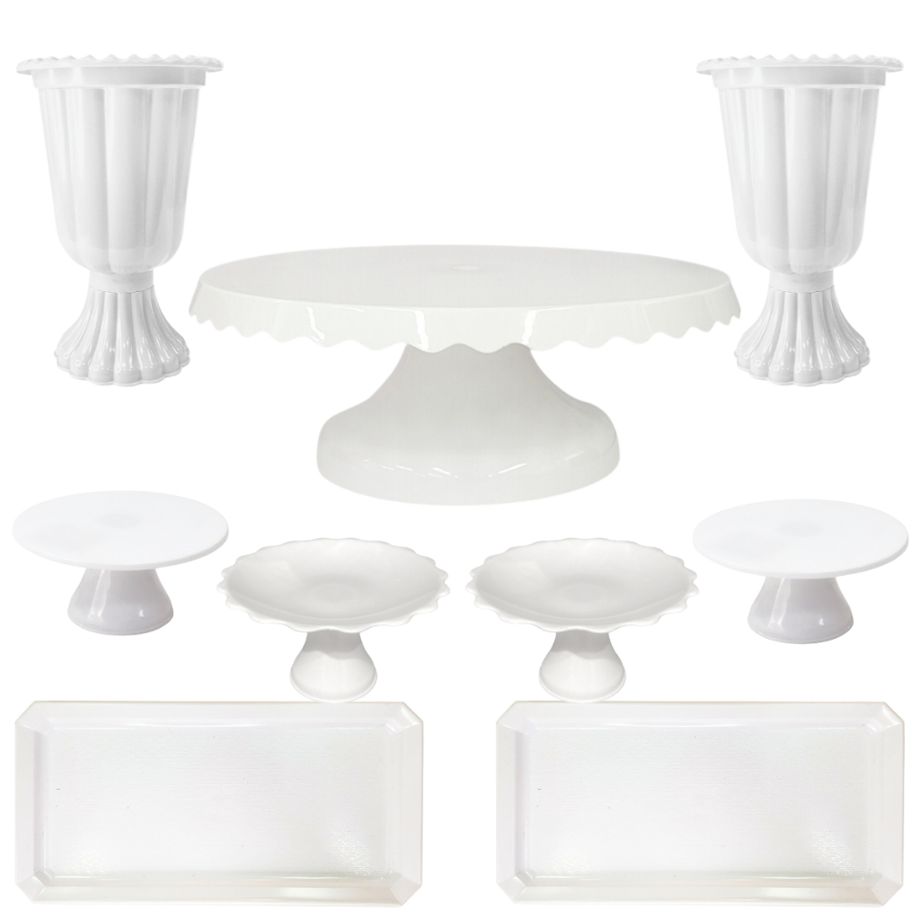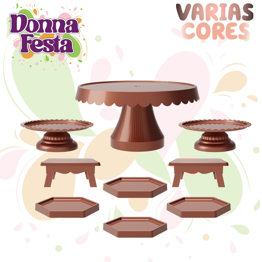 Decoracao de Festa com 9 itens Kit com 1 boleira 22cm + 4 suporte de doces + 3 bandejas + 1 mesinha