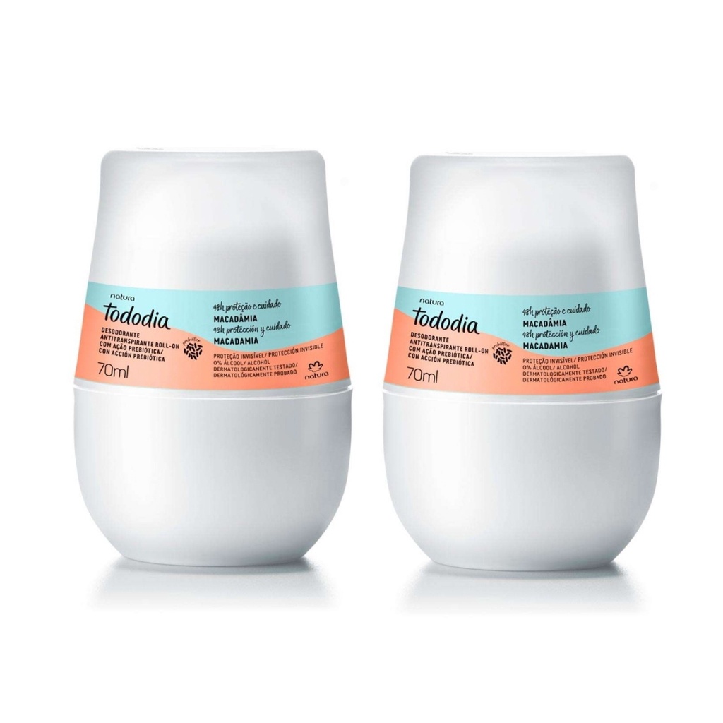 (Kit 2 unid.) Desodorante Antitranspirante Roll-On Tododia Natura - 70ml: Algodão, Macadâmia, Aclarar, Sem Perfume, Flor de Lis, Amora, Acerola e Hibisco, Manga Rosa, Ameixa e Flor de Baunilha, Erva Doce e mais