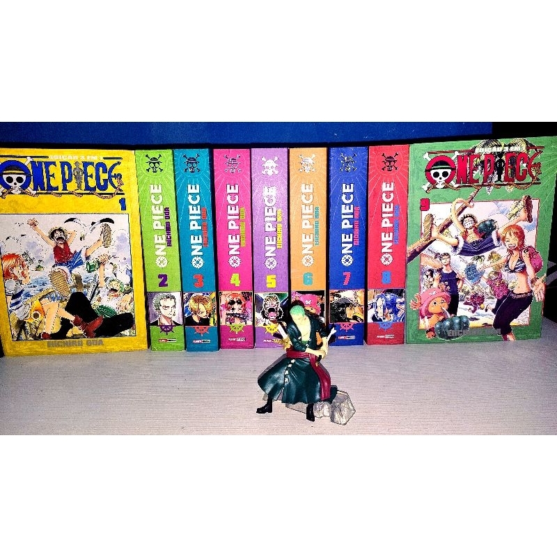 mangá One Piece 3 em 1 volumes 1 ao 9 + Figure Zoro