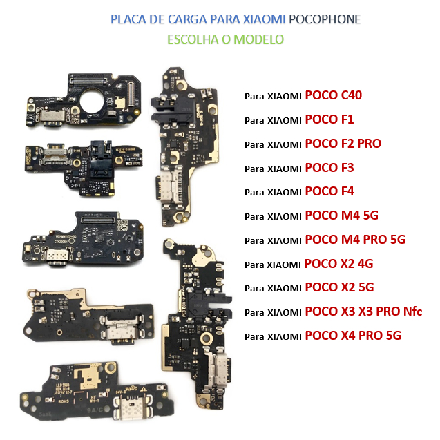 Placa Conector de Carga Flex Microfone Xiaomi Poco F1 / F2 / F3 / F4 / C40 / M4 / X2 / X3 / X4 Dock Turbo Carga Rápido