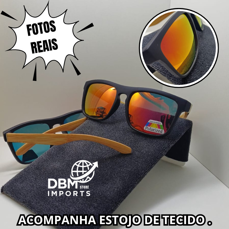 Oculos de Sol Masculino Polarizado UV400 Haste Bambu Novo