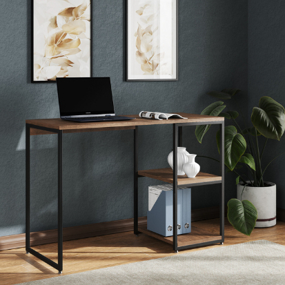Mesa Escrivaninha Industrial Home Office Berlim C/Prateleiras 110x46cm Base de Ferro Tampo de Madeira