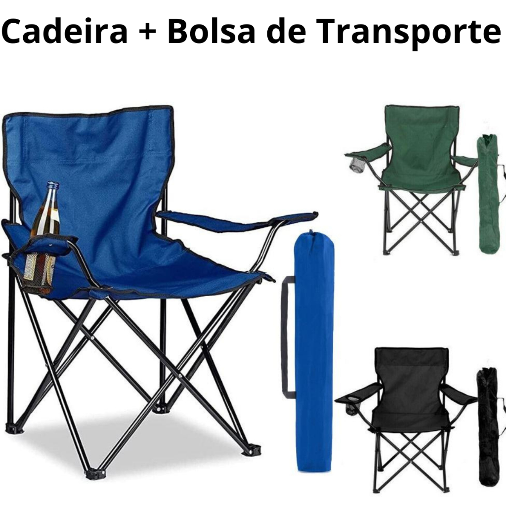 Cadeira Portátil Dobrável Com Porta Copo Para Praia Camping Pesca + Bolsa de Transporte