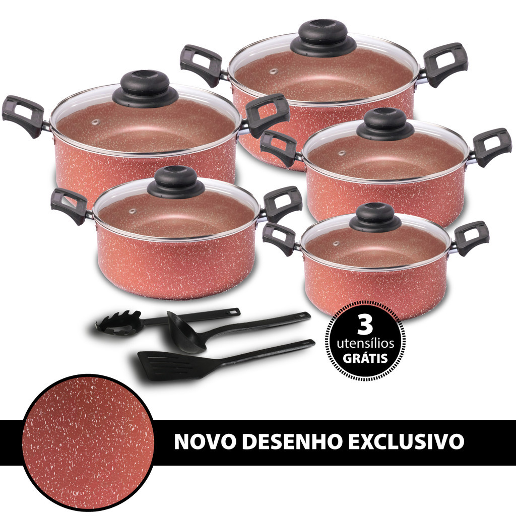 Jogo De Caçarolas 05 Peças Preto C Tp De Vidro E Utensílios