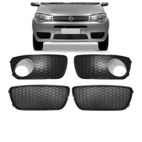 Kit par tela grade moldura Para-choque Palio Siena economy sem furo de milha 2004 2005 2006 2007 2008 2009 2010 2011 2012