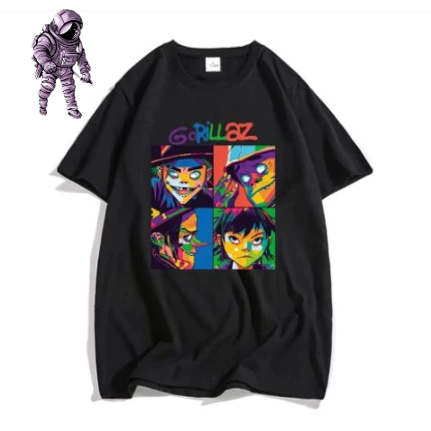 Camisa Gorillaz - Camiseta de Banda de Rock N Roll Unissex 100% Algodão