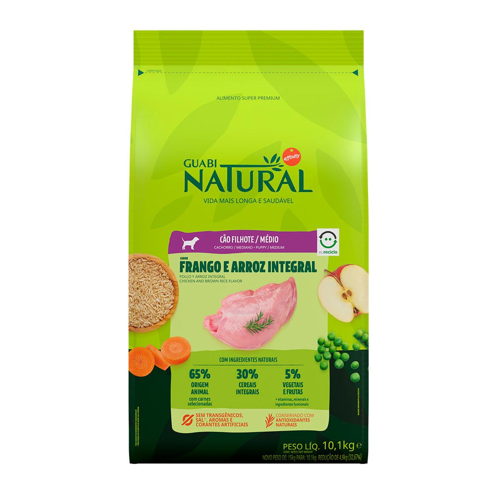 Ração Guabi Natural Frango e Arroz Integral Para Cães Filhotes Raças Médias - 2,5Kg, 10,1Kg ou 20Kg