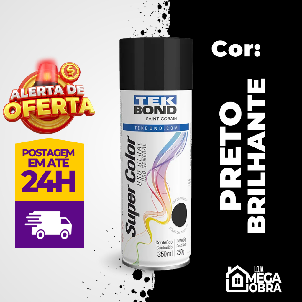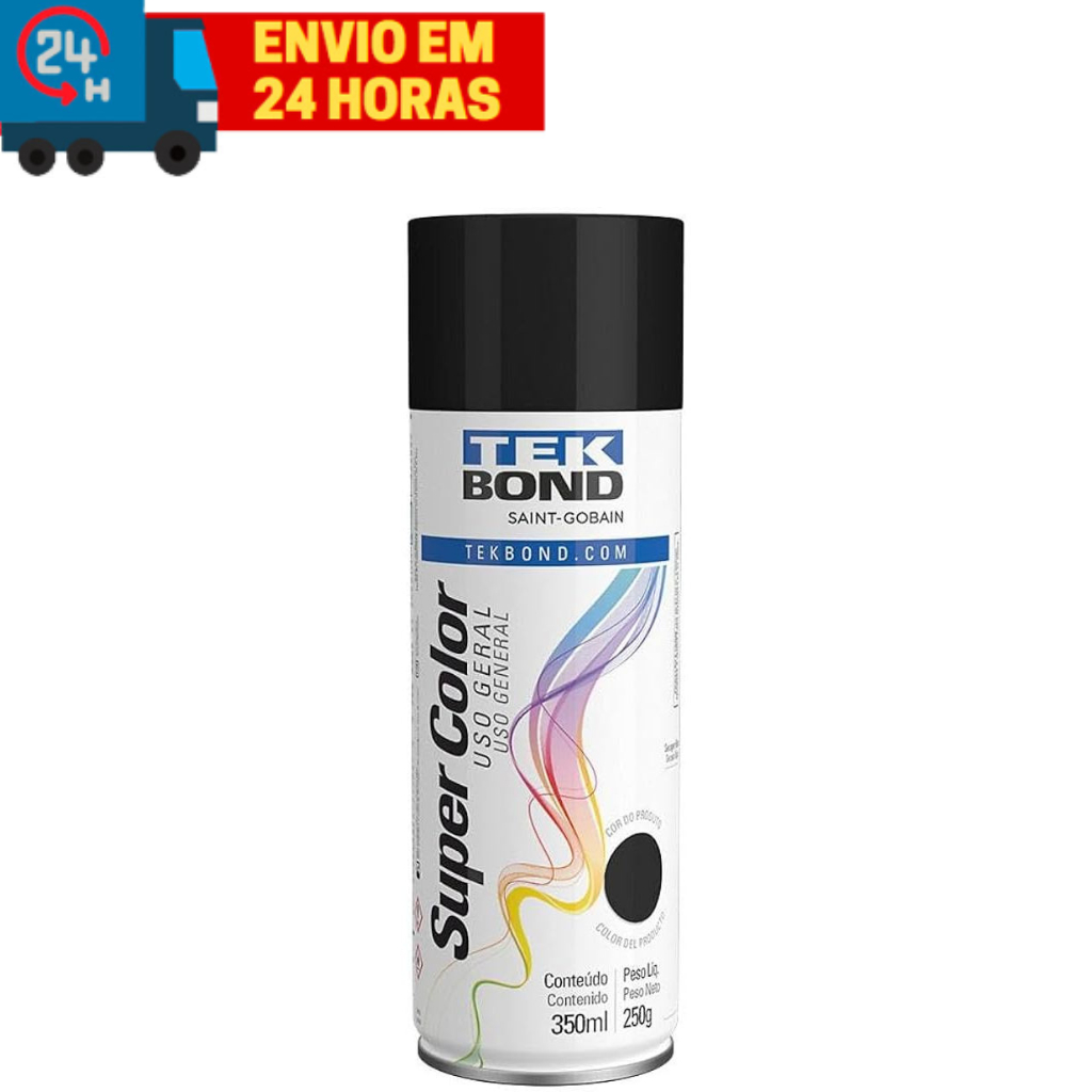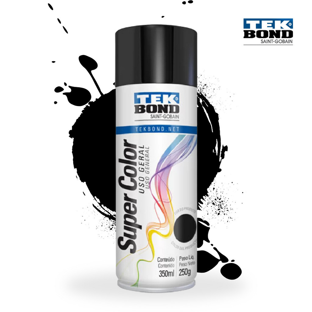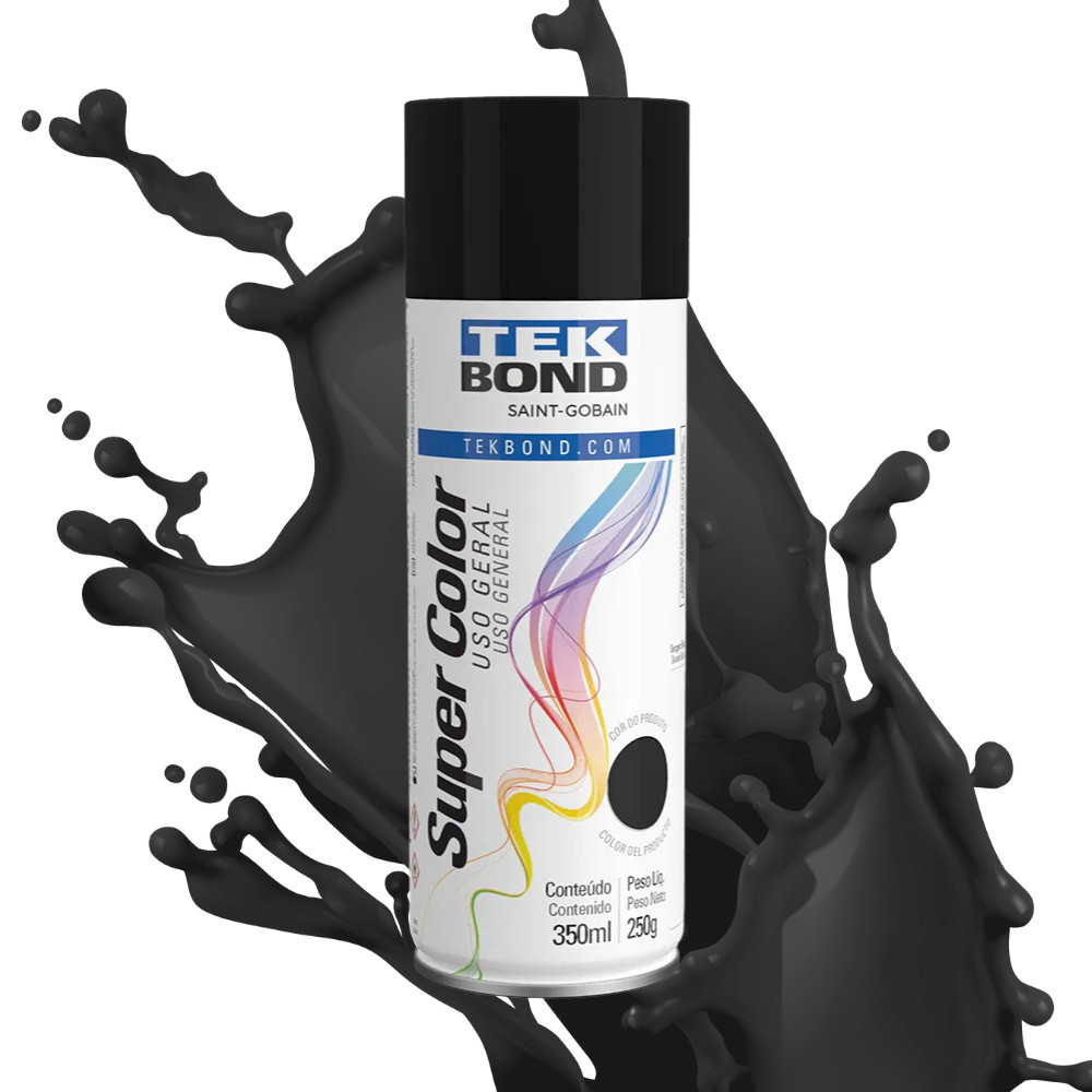 Tinta Spray Preto Brilhante Tekbond Supercolor Uso Geral Multiuso Secagem Rápida 350ml
