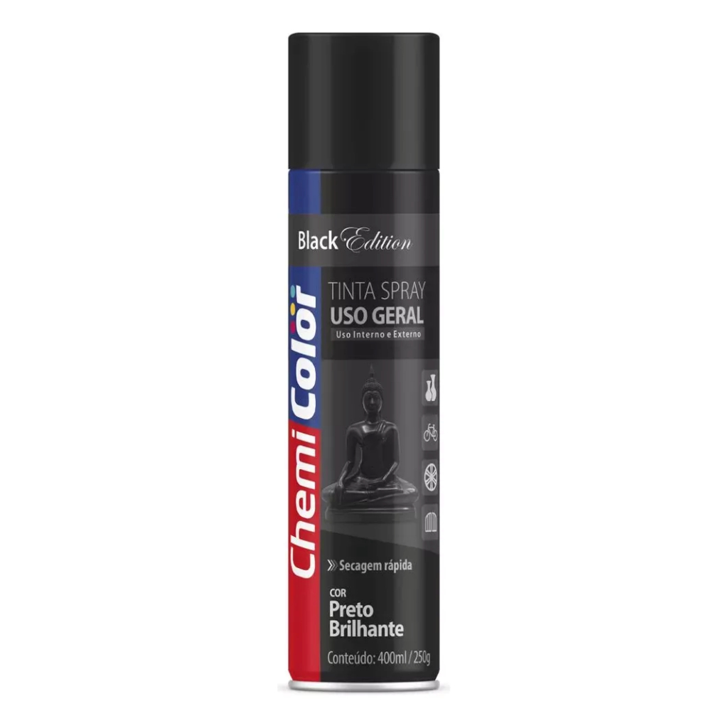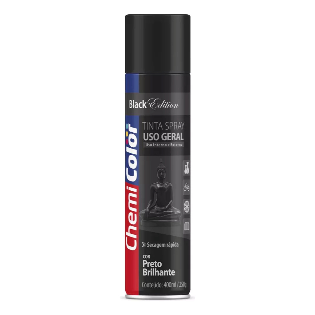 Tinta Spray Preto Brilhante Uso Geral ChemiColor Uso Interno/Externo Secagem Rápida 400mL/250g