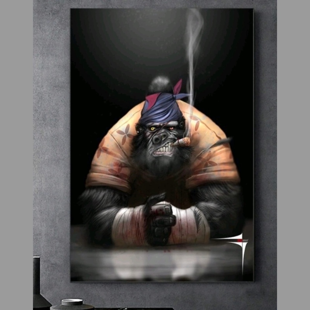 Quadro decorativo 1 peça 70x90 macaco gorila fumando moderno abstrato decoração para casa sala quarto hall