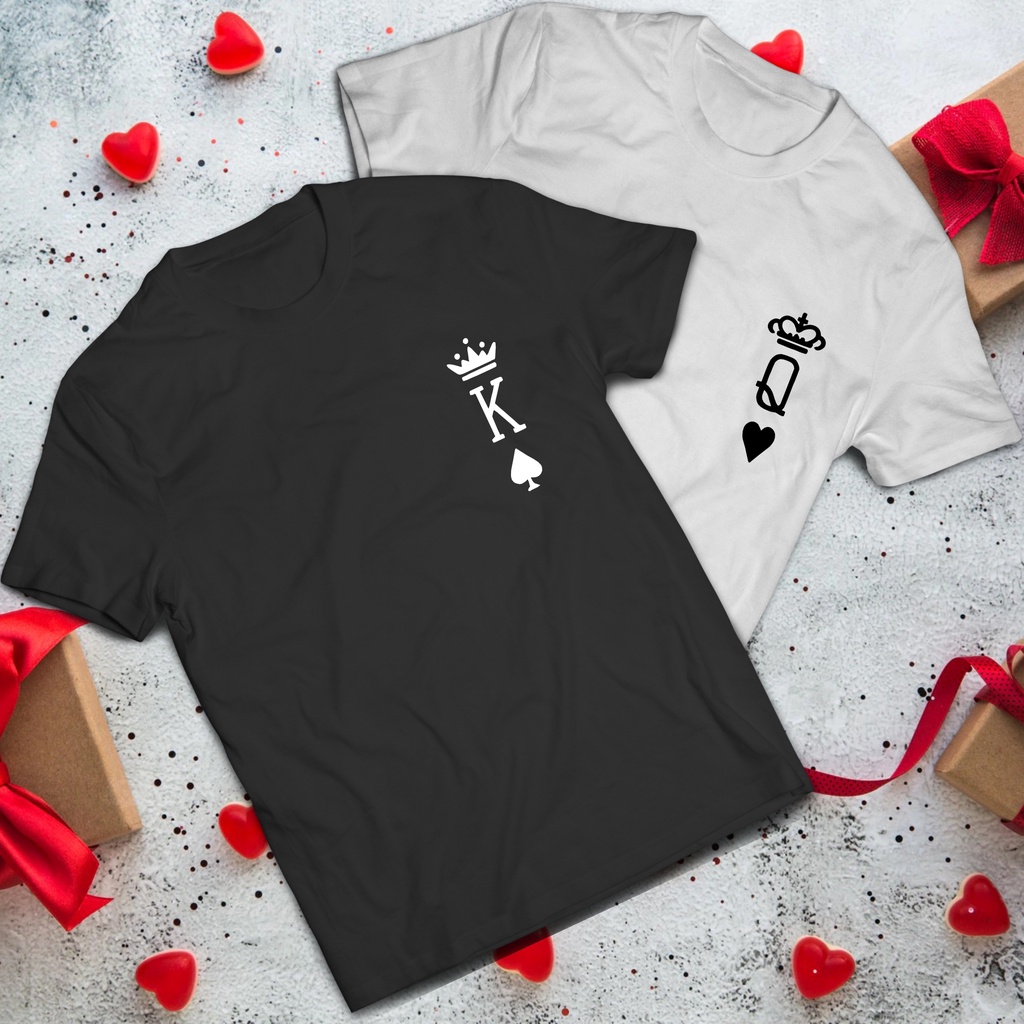 Kit 2 Camisetas Casal Dia dos Namorados King Queen Rei Rainha Poker K Q