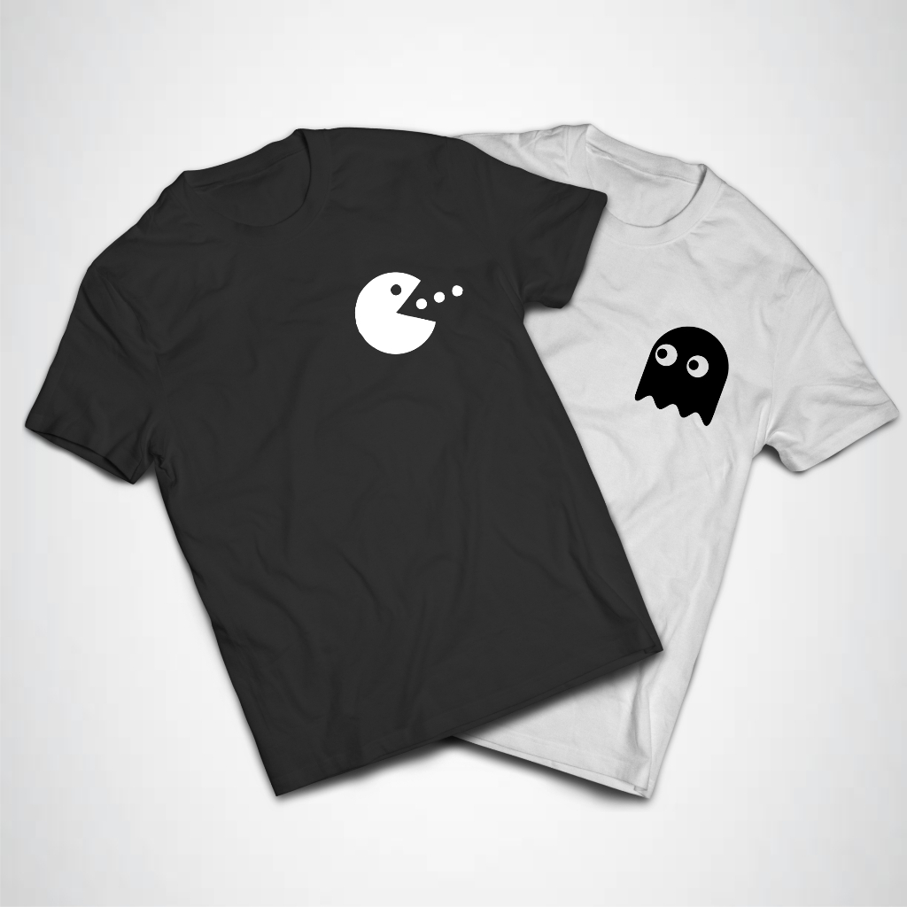 Kit 2 Camisetas de Casal Dia dos Namorados Pac Man Fantasminha Come Come