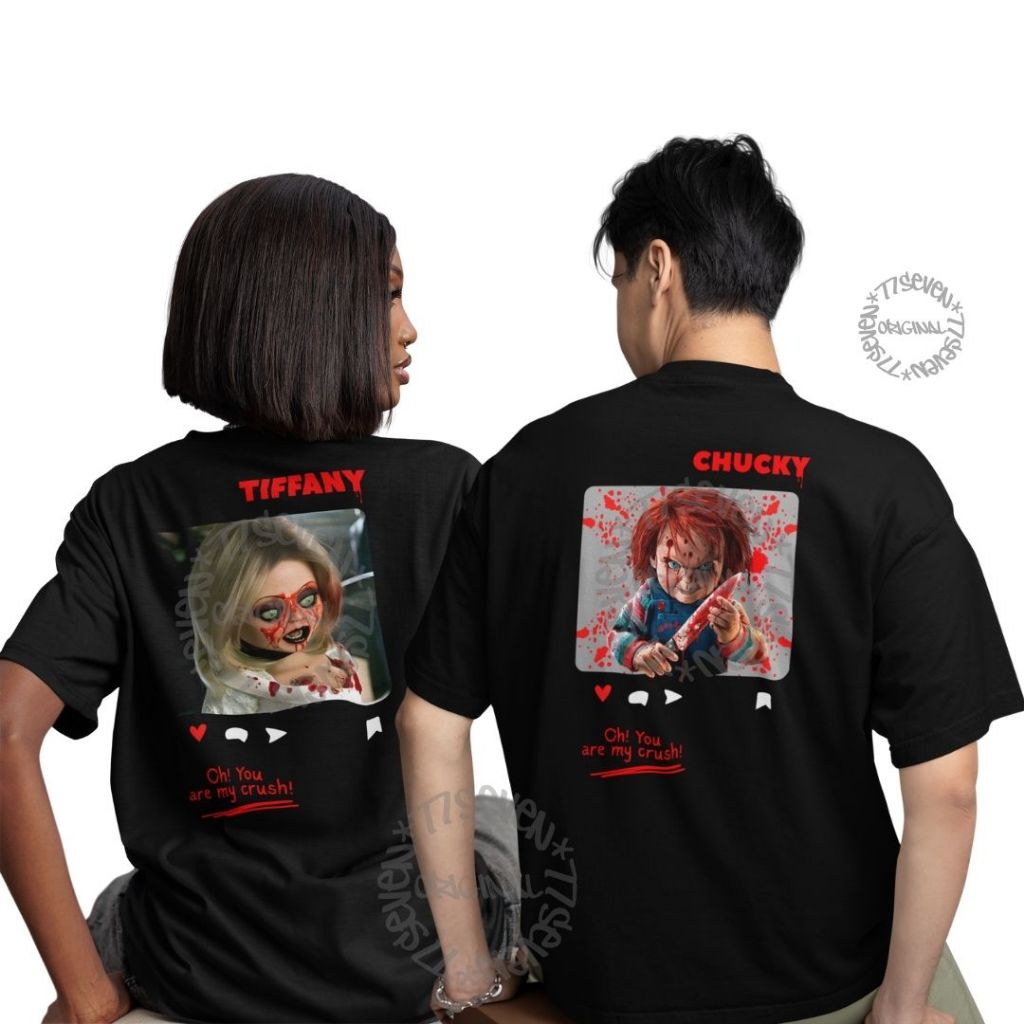 Kit 2 Camisetas Casal Filme Chucky Tiffany Moda Boneco Terror Dia dos Namorados Envio Rápido Presente Criativo