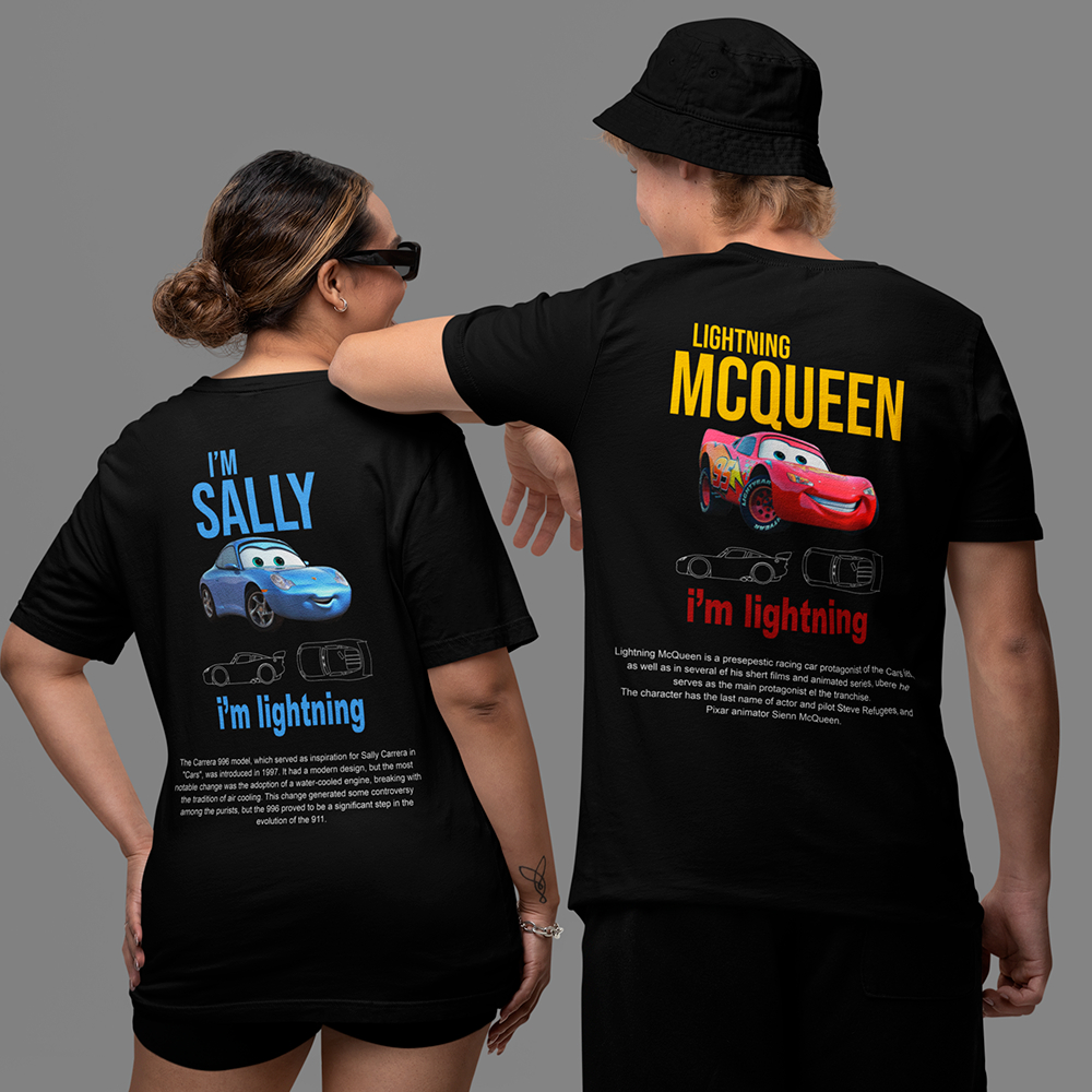 Kit DIA DOS NAMORADOS 2 Camisetas Casal Relâmpago Mcqueen e Sally Masculina e Feminina