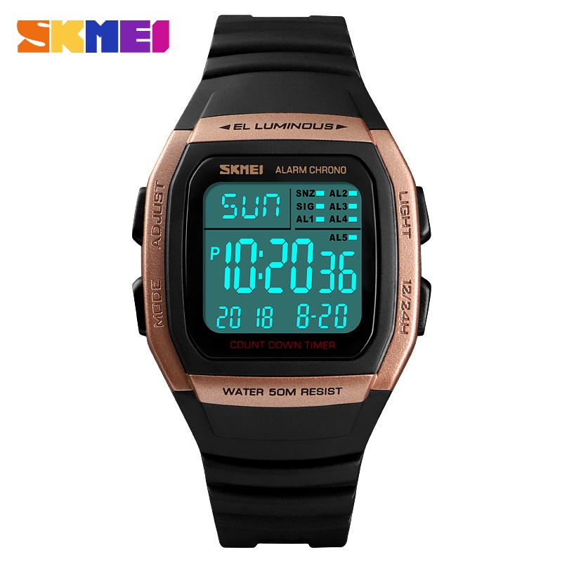 SKMEI 1560 100M Relógio Eletrônico Esportivo À Prova D'água Militar LED Digital Cronômetro Masculino 1068 Reloj
