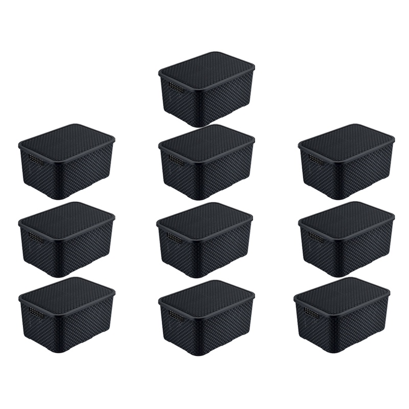 Kit 10 Caixas Organizadora Rattan 7 Litros C/ Tampa Preta 25588 Arqplast