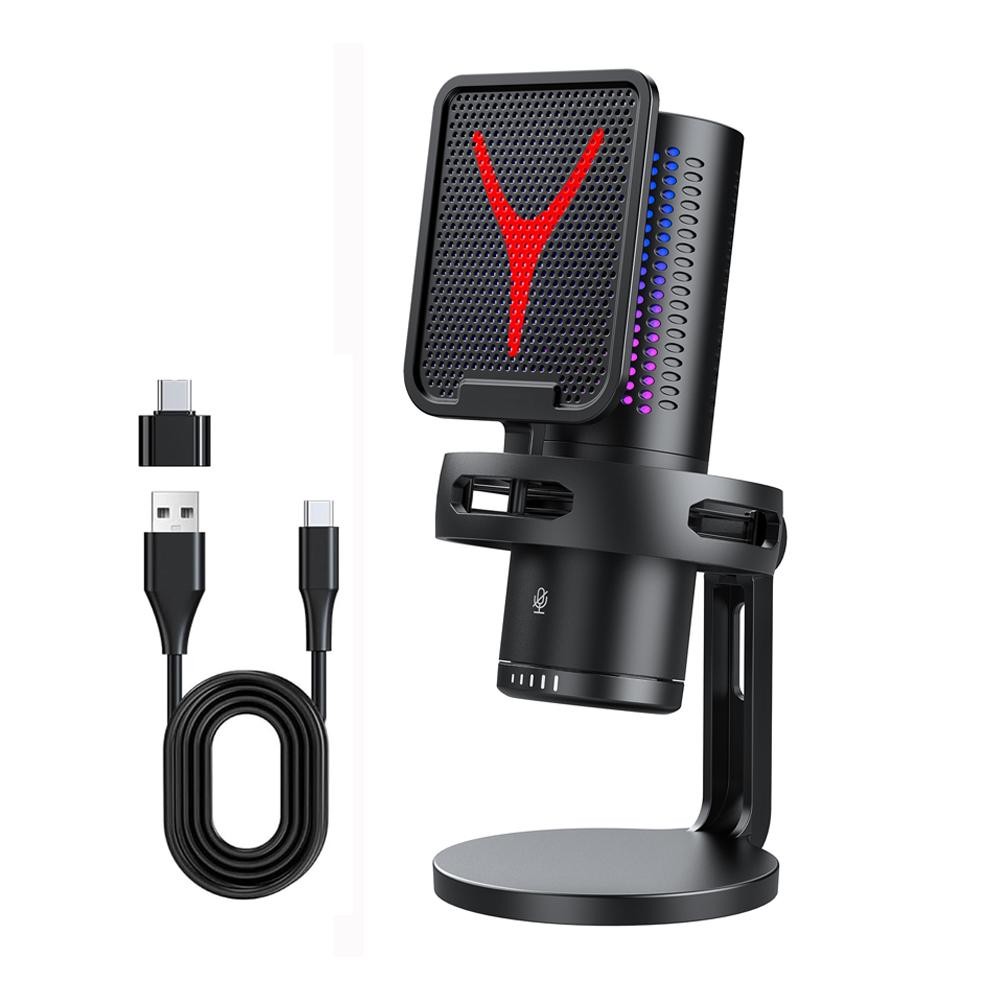 Microfone USB Para Jogos De PC Com Fio Streaming Podcasts , De Mesa Condensador De Computador RGB Vídeo YouTube