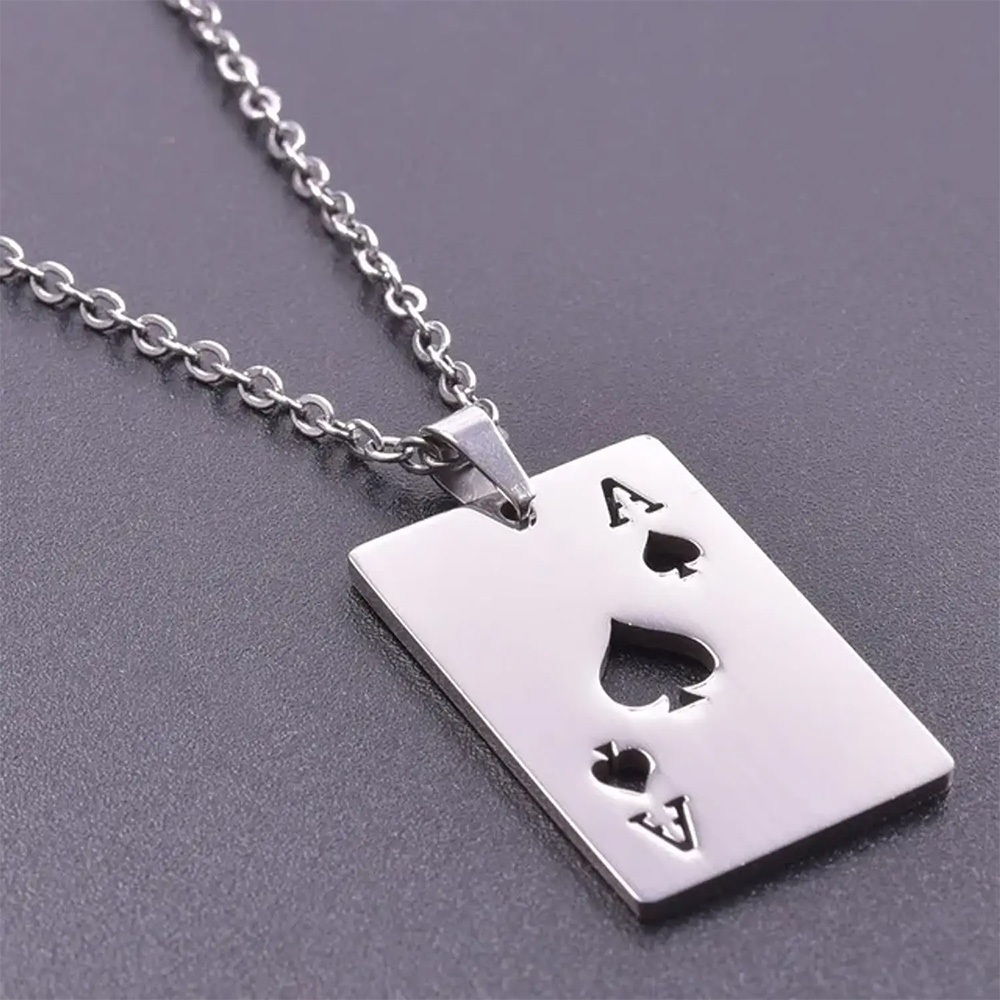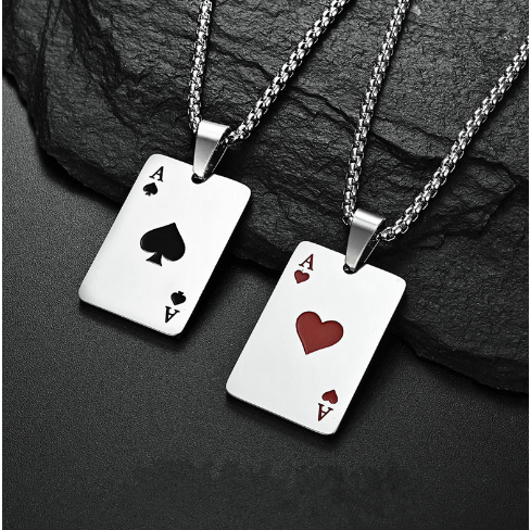 Colar de aço inoxidável com pingente cartas de baralho, ás de copas, ás de espadas