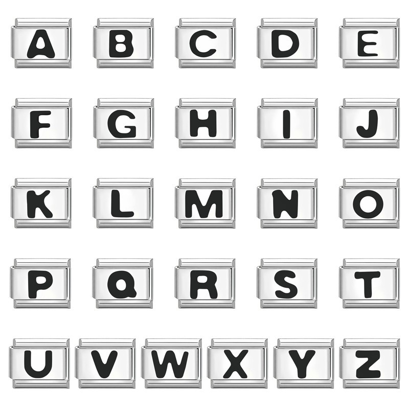 Preto 26 Cartas Em Inglês Charm Fit Italian Links 9mm Pulseira De Aço Inoxidável Fazendo Jóias Diy Fashion Jewelry Acessórios De Moda Retro Personalidade Módulo