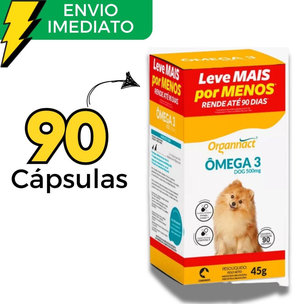 Suplemento Vitamínico p/Caes Organnact Omega 3 Dog 500 - Envio Imediato