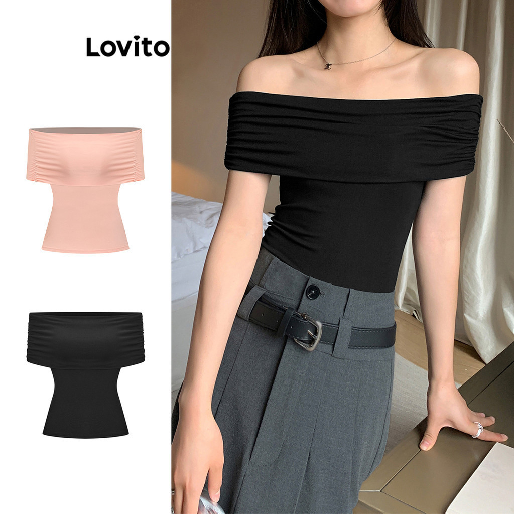 Lovito Casual Lisa Camiseta Feminina Franzida de Manga Curta L64AD022 (Multicolorido)