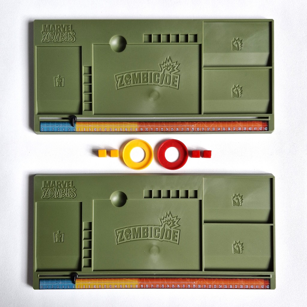 2 Dashboard + 4 Cubos + 2 Bases (Laranja e Vermelho) - Zombicide Marvel Zombies / X-Men Resistance